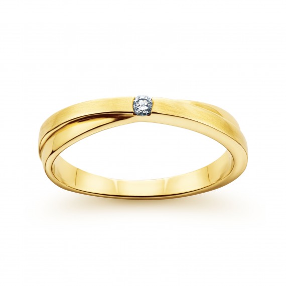 Delikatny pierścionek z diamentem ( brylantem ), wykonany z żółtego złota.