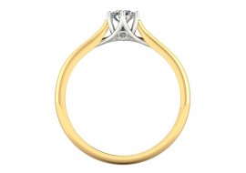 Pierścionek wykonany z żółtego i białego złota. Centralny diament ( brylant ) o masie 0,26 ct oraz dwa mniejsze w koronce. Taka forma będzie aktualna przez długie lata. Świetnie będzie pasował do biżuterii z białego i żółtego złota. Rozmiar dostosujemy bezpłatnie.