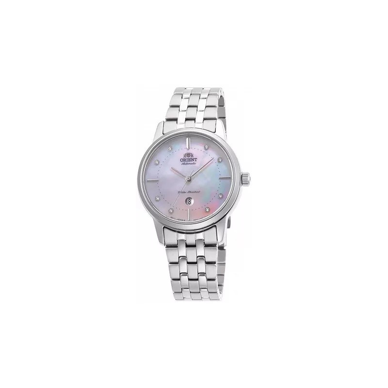 Egarek Orient RA-NR2007A10B, to elegancki element damskiej biżuterii, został wykonany ze stali szlachetnej 316L. Cyferblat zegarka wykonany z masy perłowej na której umieszczono w miejscu indeksów 8 kryształków. na godzinie 6, umieszczono datownik. Zegarek wyposażono w mechanizm automatyczny, całość przykryta szkłem szafirowym.
