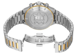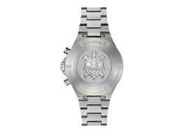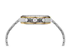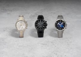 Co najmniej równie sportowy jest nowy chronograf Certina DS-7 z mechanizmem kwarcowym PrecidriveTM, umieszczonym w okrągłej kopercie ze stali szlachetnej o średnicy 41 mm. Wskazania godzin i minut, mała wskazówka sekundnika i datownik są uzupełnione przez umieszczoną centralnie stop sekundę, wskazanie 1/10 sekundy i licznik 30-minutowy. Skala tachometryczna na wąskim pierścieniu lunety umożliwia nieskomplikowany pomiar prędkości. Niezależnie od tego, czy chodzi o wersję z metalicznym połyskiem, czy o imponującą elegancję w kolorze szczotkowanej czerni – te zegarki to nowoczesne klasyki, które można nosić dzień pod dniu z niezmienną przyjemnością!