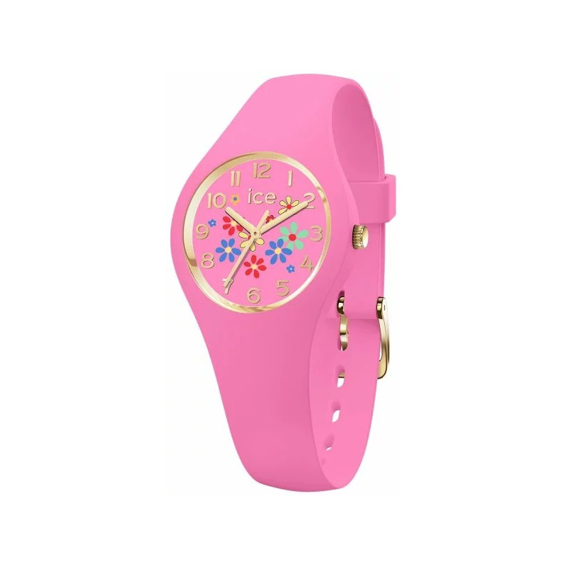 Zegarek dziecięcy, wykonano z wysokiej jakości silikonu w różowym kolorze z akcentami żółtego złota i kolorowymi kwiatami na tarczy. Zegarek posiada mechanizm kwarcowy i wodoodporność na poziomie 100m. Jest niezwykle lekki, przyjemny w dotyku a silikon wysokiej jakości nie traci koloru oraz nie przyjmuje innych barw. Idealny wybór dla aktywnych osób oraz na lato.