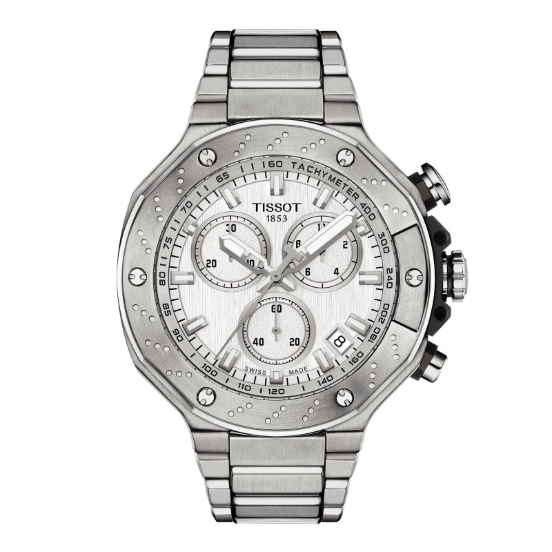 W tym roku ten model powraca z nowym designem, który ma teraz bardziej elegancką tarczę, nadając zegarkowi czystszy wygląd, ale nadal szanując jego sportowe korzenie. Podobnie jak w świecie sportu, Tissot to marka, w której pasja spotyka się z innowacjami i stylem. Kolekcja T-Race inspirowana jest wolnością, podążaniem za celem oraz pasją. Rodzina T-Race to zegarki zanurzone w mechanicznym środowisku i nieustannie przywołującego jego ducha. Przyciski na kopercie inspirowane są kierownicą, zaś z boku koperty można dostrzec element przypominający żeberka chłodzące silnik. Zegarek jest wodoodporny, z kwarcowym mechanizmem chronografu oraz wskazówkami godzin i minut pokrytymi powłoką SuperLuminova®. Tissot czerpie ze współpracy z wyścigami motocyklowymi, produkując zegarki, które odzwierciedlają dynamiczną naturę samych motocykli i emocje związane ze sportem.