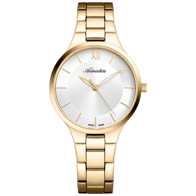 Elegencki zegarek damski w kolorze żółtego złota. Zarówno koperta jak i bransoleta wykonana jest ze stali szlachetnej pozłacanej metodą PVD. Wewnątrz znajduję się dokładny mechanizm kwarcowy. Zegarek jest wyposażony w szkło mineralne oraz wodoodporność 3 ATM.
