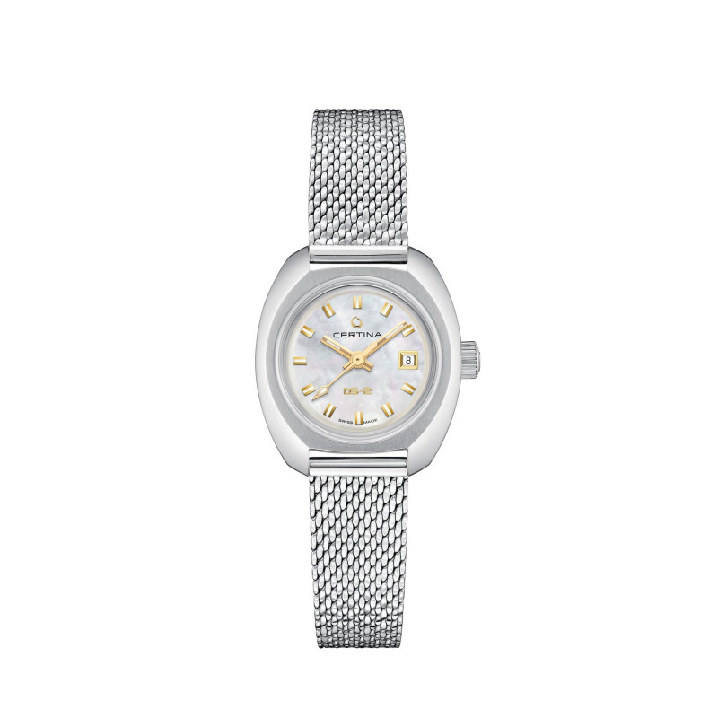 Pełen wdzięku model Certina DS-2 Lady kontynuuje tradycję historycznych zegarków jubilerskich. W środku delikatnej koperty umieszczony jest mechanizm z automatycznym naciągiem. Delikatnie mieniąca się masa perłowa i elegancka bransoleta siatkowa Milanese lub skórzany pasek podkreślają delikatny, kobiecy charakter tego ponadczasowego i bardzo precyzyjnego zegarka na rękę.
