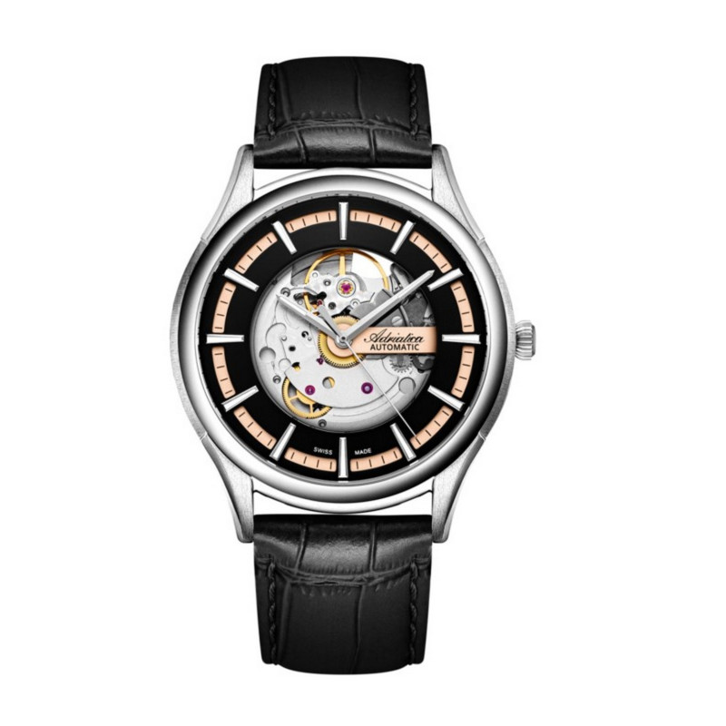 Męski zegarek automatyczny Adriatica model Skeleton to propozycja dla mężczyzn ceniących nie tylko elegancję, ale także kunszt zegarmistrzowski. Stalowa koperta zapewnia trwałość i wytrzymałość, a skórzany pasek dodaje klasy i komfortu. Przez tarczę typu skeleton można podziwiać wnętrze zegarka i pracę precyzyjnego mechanizmu Sellita SW200 lub Eta 2824 Swiss Made, co nadaje mu unikatowy charakter. Szkło szafirowe skutecznie chroni przed zarysowaniami, a wodoodporność 5 ATM sprawia, że jest odporny na codzienne zachlapania.