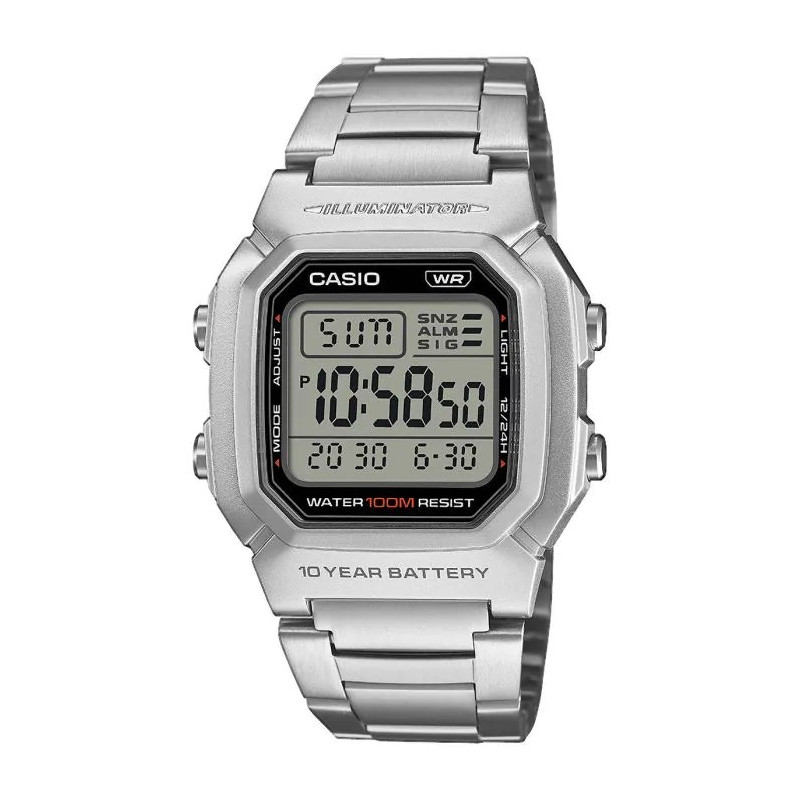 Zegarek męski cyfrowy, który łączy kultowy design marki Casio z praktycznymi funkcjami do codziennego użytkowania. Model z serii CASIO TIMELESS COLLECTION MEN to doskonały wybór dla osób ceniących prostotę, funkcjonalność i ponadczasowy styl. Srebrna koperta oraz stalowa bransoleta nadają zegarkowi uniwersalny, sportowo-klasyczny charakter, który sprawdzi się zarówno na co dzień, jak i podczas aktywności.