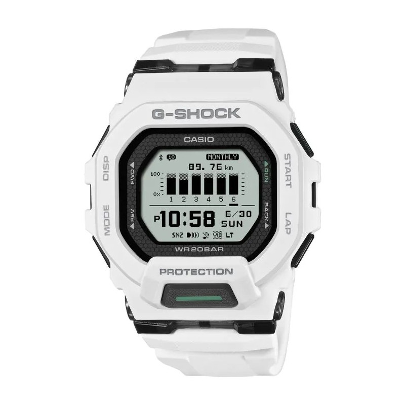 Zegarek wyposażono w takie funkcje jak: system antywstrząsowy g-shock, alarm, timer, chronograf (stoper), 4 alarmów, datownik, wielofunkcyjny wyświetlacz, podświetlenie. Za sprawą Bluetooth posiada takie funkcje jak: krokomierz, licznik kalorii, pomiar dystansu, znajdź mój telefon, alarm wibracyjny. Wodoszczelność tego zegarka to 200m.