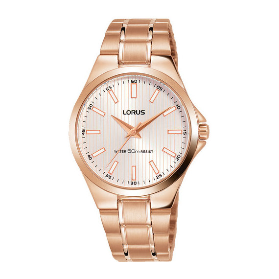 Zegarek utrzymany w barwie różowego złota, model tworzą koperta i bransoleta, które wykonano ze stali szlachetnej. Posiada sprawdzony mechanizm kwarcowy zasilany baterią. Niezwykle stylową tarczę przed uszkodzeniami chroni szkiełko mineralne. Wodoszczelność na poziomie 50 m oznacza ochronę mechanizmu przed większymi zachlapaniami.
