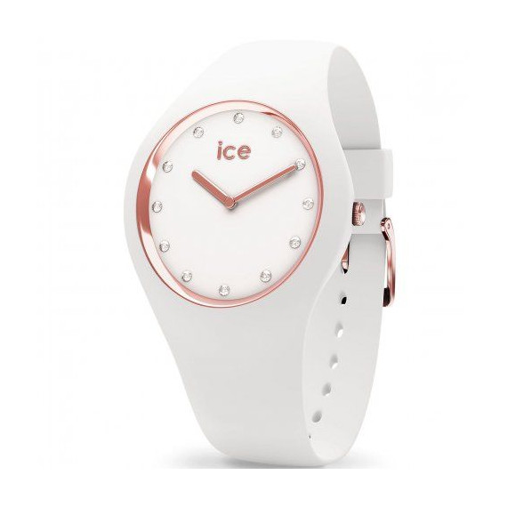 Ice Watch to sportowy zegarek z nutką elegancji dla kobiet. Zegarek wykonano z wysokiej jakości sylikonu w kolorze białym z akcentami z różowego złota na tarczy.Dodatkowo na cyferblacie rozmieszczono kolorowe kamienie Swarovskiego. Zegarek posiada mechanizm kwarcowy i wodoodporność na poziomie 100m.Zegarek jest niezwykle lekki, przyjemny w dotyku.Idealny wybór dla aktywnych osób oraz na lato. Dzięki wysokiej wodoszczelności nie trzeba obawiać się o zegarek podczas pływania zarówno na basenie jak i na plaży.