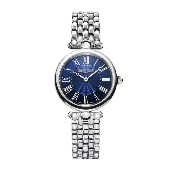 Klasyczny i elegancki zegarek damski z linii Art Deco w srebrnym kolorze na bransolecie. Charakteryzuje się delikatną, minimalistyczną granatową tarczą, którą zdobią białe, rzymskie cyfry. Szkło szafirowe odporne na zarysowania, wodoszczelność 3 ATM. Zegarek idealny dla kobiet ceniących sobie piękne dodatki, klasyczny styl. Pasuje doskonale do stylizacji wieczorowych, biznesowych, jak i mniej formalnych.
