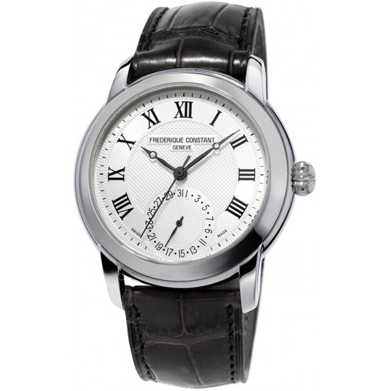 Elegancki zegarek męski na pasku skórzanym z aligatora. Koperta zegarka wykonana została ze stali szlachetnej, giloszowany cyferblat o jasnym kolorze, chroni najwyższej klasy odporne na zarysowania szkło szafirowe. Godziny na tarczy oznaczone są poprzez cyfry rzymskie. Zegarek posiada mechanizm automatyczny oraz wodoszczelność 50m.