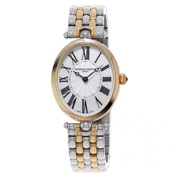 Zegarek damski o eleganckim charakterze. Uroku dodaje mu owalny cyferblat z rzymskimi indeksami w bikolorze na bransolecie. Posiada kwarcowy mechanizm, szafirowe szkło odporne na zarysowania oraz wodoszczelność 30m.