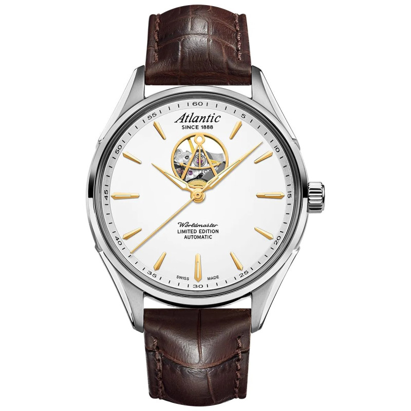 Wyjątkowy model szwajcarskich projektantów z Atlantic'a, limitowana edycja. Posiada nakręcany ruchem ręki mechanizm automatyczny Sellita SW 200-1, szafirowe szkiełko, transparentny dekiel i open heart na tarczy przez które można podziwiać pracujące wnętrze zegarka. Zegarek na brązowym skórzanym pasku.