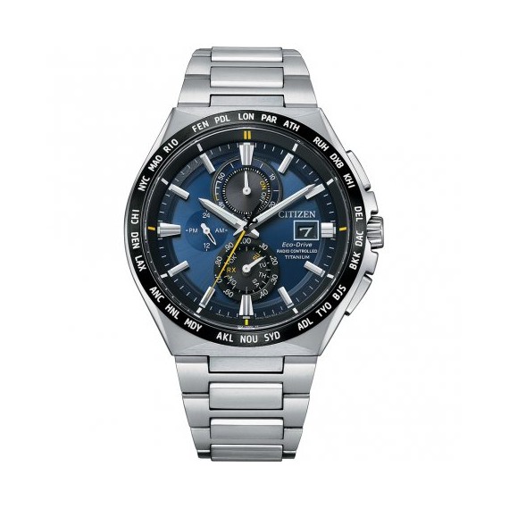 Zegarek Super Titanium AT8234-85L radio controlled to wyjątkowy czasomierz, wyróżniający się jakością wykonania oraz zaawansowanym mechanizmem.Czasomierz wyróżnia się zaawansowanym mechanizmem, który zasilany jest przez Eco Drive czyli panel solarny. .Kwarc Eco-Drive - zegarek generuje energię za pośrednictwem ogniw fotowoltaicznych wbudowanych w tarczę, energia magazynowana jest w akumulatorze.Czasomierz został wyposażony w czas światowy, który można sprawdzić poprzez wskazanie interesującego nas miasta. Funkcja Radio Controlled dostosuje wskazywany czas do aktualnego czasu w tym właśnie mieście. Zegarek dodatkowo posiada rozbudowany datownik, wskazujący aktualny dzień tygodnia i miesiąca oraz 24 godzinne wskazanie czasu. Na tarczy zegarka znajdziemy również wskaźnik naładowania baterii.